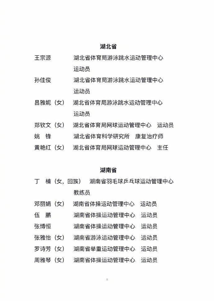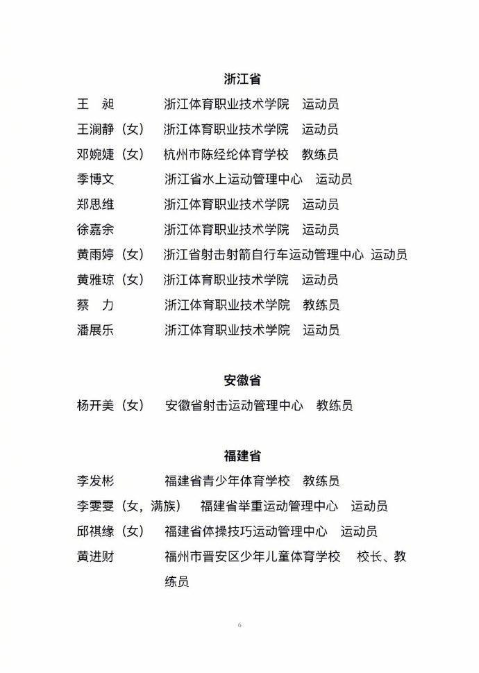 拟表彰先进个人乒乓球方面,有孙颖莎、樊振东、王曼昱、马龙;跳水方面,有全红婵、陈芋汐、王宗源、昌雅妮;游泳方面,有潘展乐、覃海洋、张雨霏;羽毛球方面,有陈清晨、郑思维/黄雅琼、梁伟铿;其他项目方面,有郑钦文、盛李豪、隋文静、武大靖等等。