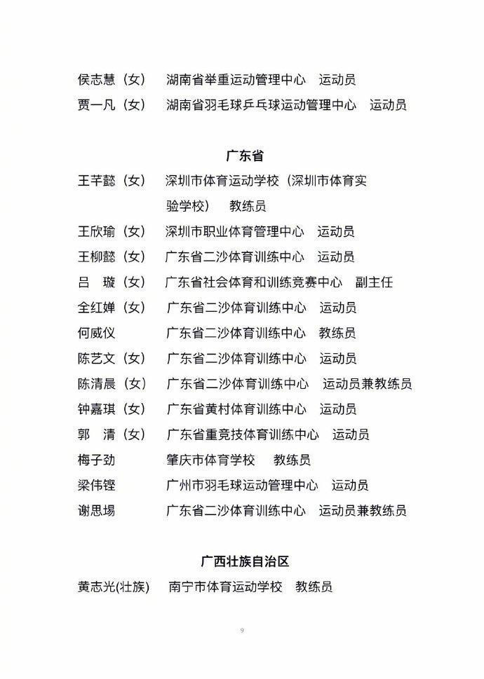 全国先进个人拟表彰樊振东、孙颖莎、马龙、郑钦文等运动员